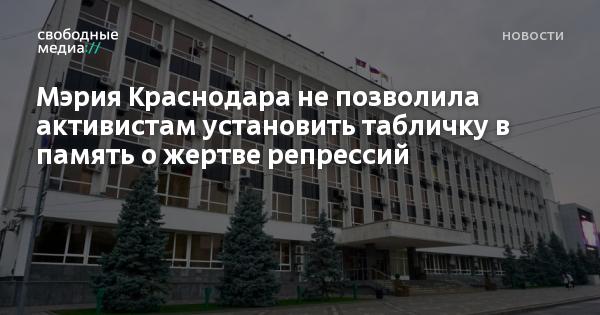 Администрация Краснодара не дала разрешения на установку таблички в память о жертве сталинских репрессий, сообщает «Кавказский узел».