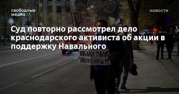 Ленинский районный суд Краснодара повторно рассмотрел административное дело активиста Алексея Никитина об акции в поддержку Алексея Навального, прошедшей 21 апреля перед региональной администрацией.