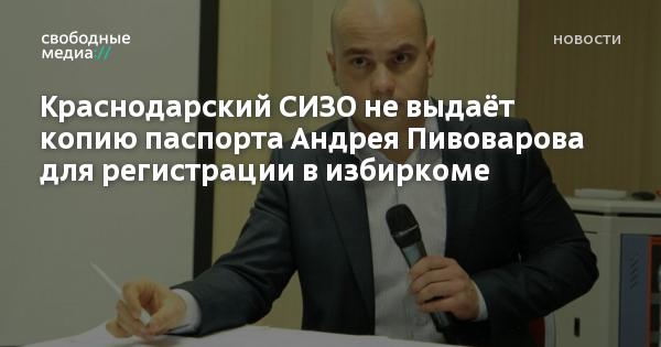 Сторонники Андрея Пивоварова, арестованного в СИЗО №1 Краснодара по делу о «нежелательной организации» «Открытая Россия», рассказали, что администрация изолятора отказывается выдавать копию паспорта политика, необходимую для регистрацию его в избиркоме.