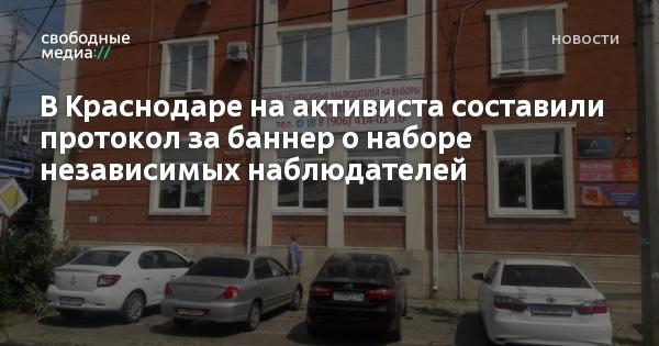 На баннере написано: «Набор независимых наблюдателей на выборы». Согласно протоколу, конструкция не соответствовала правилам благоустройства города. Требование о демонтаже подписала главный архитектор Краснодара Наталья Машталир.