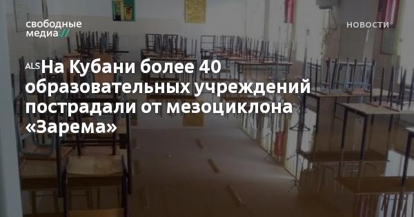 В Краснодарском крае 41 объект системы образования пострадал в результате подтоплений и непогоды, сообщила вице-губернатор региона Анна Минькова в своём Instagram-аккаунте.