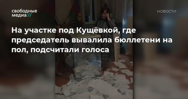 В селе Красном Кущёвского района на участке 28-26, расположенном в здании местной администрации, подсчитали голоса избирателей. Это произошло после того, как комиссия 8 часов не приступала к подсчёту, а после председатель Людмила Коноваленко с криками порвала сейф-пакеты, вскрыла урны и высыпала бюллетени на пол.