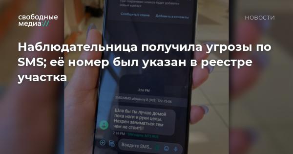 Наблюдательница «Умного наблюдения» на участке 20-26 в здании школы № 23 Дарья Соколова получила угрозы по SMS от неизвестного номера.