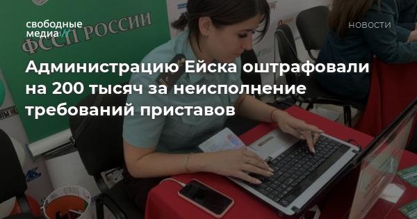 Администрация Ейского городского поселения была оштрафована на 200 тысяч рублей, так как не выполнила требования исполнительных производств, которые возбудили судебные приставы.