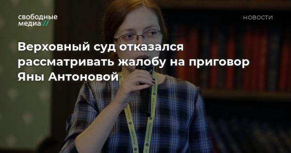 Верховный суд России отказал бывшему координатору «Открытой России» Яне Антоновой в рассмотрении жалоб на приговор по статье о «нежелательной организации», сообщает активистка в своём телеграм-канале.