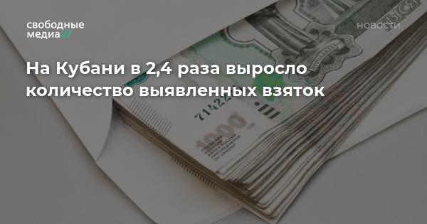 В Краснодарском крае за 10 месяцев 2021 года зафиксировано 385 фактов получения взяток, что в 2,4 раза больше, чем за аналогичный период прошлого года, сообщает РБК со ссылкой на прокурора Краснодарского края Сергея Табельского.