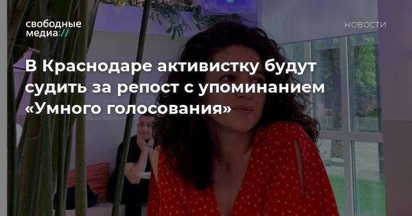 В Краснодаре активистку Алипат Султанбегову хотят привлечь к ответственности по части 1 статьи 20.3 КоАП РФ «Распространение экстремистской символики» из-за репоста в инстаграме с кандидатами «Умного голосования», сообщает портал Юга.ру.