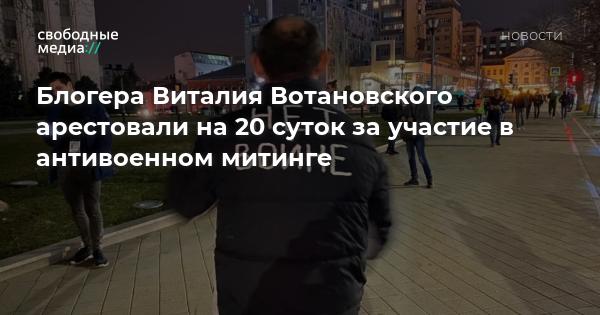 Блогера Виталия Вотановского, автора телеграм-канала «Титушки в Краснодаре» и военного пенсионера, арестовали на 20 суток за участие в антивоенном митинге в Краснодаре. Об этом он сообщил у себя на странице в Facebook.