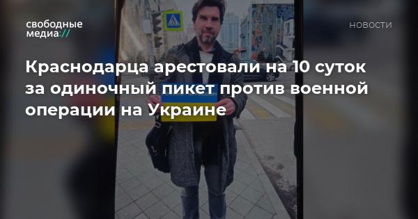 6 марта активист из Краснодара Леонид Кудинов вышел на площадь перед администрацией Краснодарского края с антивоенным плакатом, раскрашенным в цвета украинского флага, а потом закрепил его к постаменту памятника «Казакам – основателям земли кубанской».