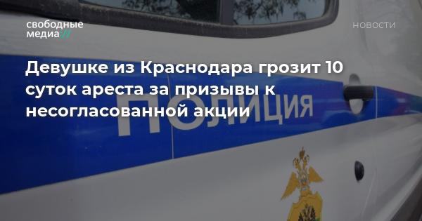 Против девушки возбудили административное дело по части 2 статьи 20.2 «Нарушение установленного порядка организации либо проведения собрания, митинга, демонстрации, шествия или пикетирования», ей грозит до 10 суток ареста, сообщает пресс-служба ГУ МВД России по Краснодарскому краю.