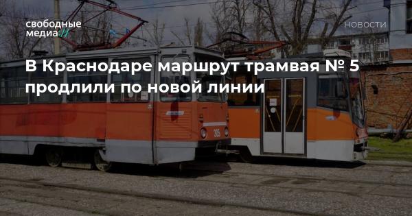 Маршрут трамвая № 5 в Краснодаре продлили по новой трамвайной линии до улицы им. Петра Метальникова.