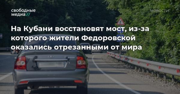 В оперативном штабе Краснодарского края сообщили, что мост через реку Аушедз, который недавно перекрыли, будут восстанавливать. Через этот мост ездили жители станицы Федоровской.