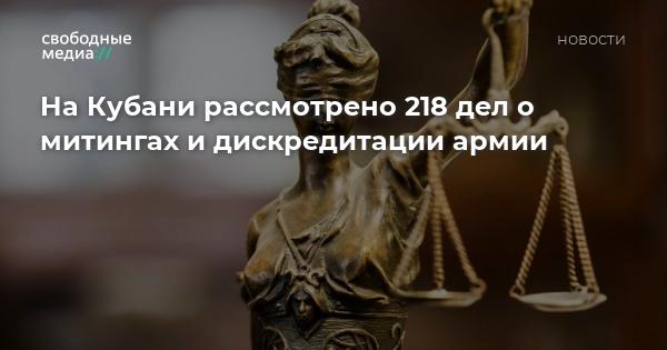 С 24 февраля по 23 мая в судах Краснодарского края рассмотрено 218 дел по статьям о митингах и дискредитации армии, сообщает антивоенный комитет Кубани. Из них 118 — статья 20.3.3 КоАП РФ, 100 — статья 20.2 КоАП РФ