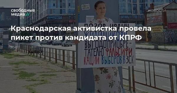 21 августа Яна Антонова провела одиночный пикет против кандидата в ЗСК от КПРФ Ивана Жилищикова, сообщает «Голос Кубани».