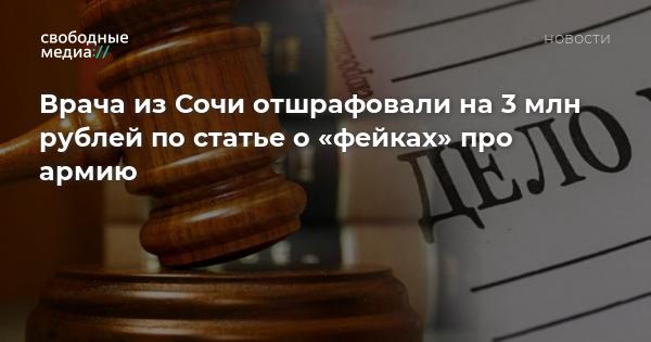 Центральный районный суд Сочи оштрафовал врача-инфекциониста на 3 млн рублей по статье о «фейках» про российскую армию (часть 2 статьи 207.3 УК РФ), сообщают «Сетевые свободы».