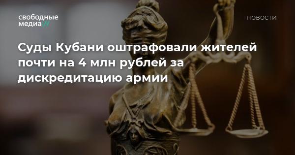 Сумма всех штрафов по статье о дискредитации армии в Краснодарском крае составила 3 млн 925 тысяч рублей, сообщает «Протокол».