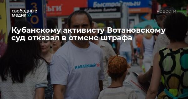 Ленинский суд Краснодара 6 октября оштрафовал на 5 тыс. рублей автора Телеграм-канала «Титушки Краснодара» Виталия Вотановского. Кубанского активиста признали виновным по об участии в нежелательной организации за репост сообщений в соцсети.