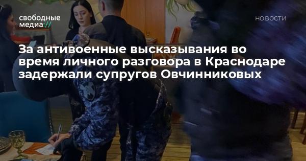 В Краснодаре полиция задержала супругов за то, что они вслух в ресторане критиковали «специальную военную операцию». Об этом сообщило издание «ОВД Инфо» (признано иностранным агентом).