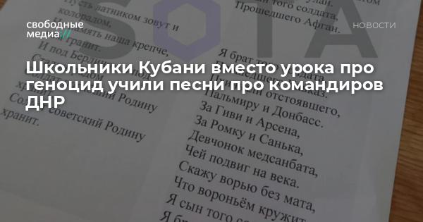 Ученики старших классов из Крымского района 17 апреля пожаловались на то, что вместо урока «Разговоры о важном» про геноцид советского народа нацистами их заставляют учить песни про солдат, «прошедших Афган», и про командиров ДНР. Речь идёт об общеобразовательной школе №9, передаёт издание SOTA со ссылкой на учеников.