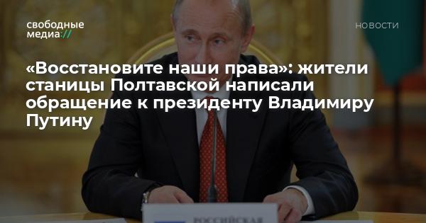 Жители станицы Полтавской подготовили обращение к президенту России Владимиру Путину. Они планируют направить письмо главе государства уже в ближайшее время.