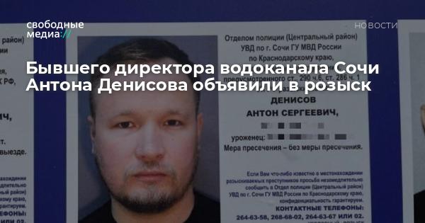 В Краснодарском крае бывшего директора МУП «Водоканал» Сочи Антона Денисова объявили в розыск. Ориентировка на него «Внимание, розыск!» появилась на городских стендах.