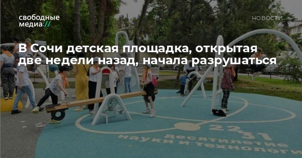 Открытая 1 июня детская площадка на Цветном бульваре в Сочи начала разрушаться, и власти закрыли её на ремонт, сообщает «Кавказский узел» (признано в России иностранным агентом).