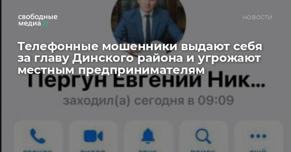 По имеющимся данным, неизвестные звонят в частные организации и выдают себя за главу Динского района Евгения Пергуна. Мошенники угрожают предпринимателям проверками.