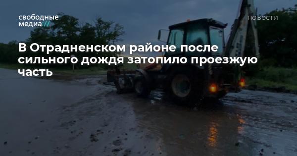 После залпового ливня в Отрадненском районе дорога между селами Отрадная и Спокойная была подтоплена водой с полей, что привело к приостановке движения транспорта. Эту информацию подтвердил глава муниципального образования Андрей Волненко в своем Telegram-канале.