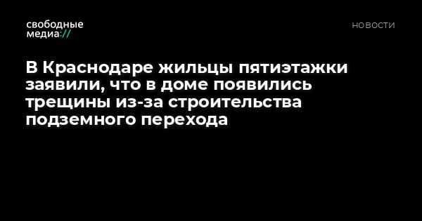 Жители многоквартирного дома на улице Красных Партизан в Краснодаре, пожаловались, что их дом трясет, а швы между панелями пошли трещинами. Они считаю, что причина — строительство подземного пешеходного перехода, сообщает 93.RU.