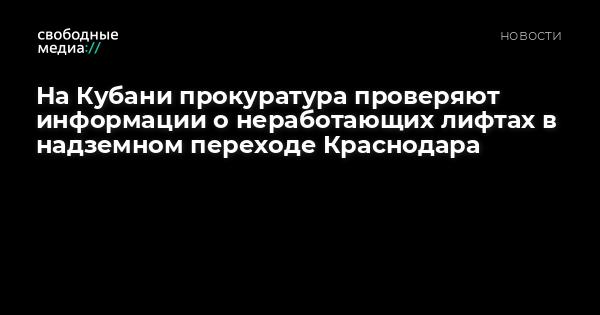 Прокуратура Краснодарского края начала проверку пр факту ситуации с надземным пешеходным переходом, расположенным на улице Западный обход в Краснодаре. По словам местных жителей, лифты там не работают уже несколько месяцев. Кроме того, отсутствуют пандусы на лестницах, из-за чего коляски с детьми приходится таскать в руках.