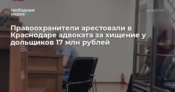В Краснодаре заключён под стражу адвокат за мошенничество в особо крупном размере. Он обвиняется в хищении 17 млн рублей у участников долевого строительства. Об этом сообщает пресс-служб СУ СК РФ по Краснодарскому краю.