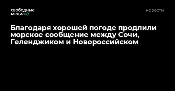 На Кубани из-за хорошей погоды продлили работу теплохода «Комета», который курсирует между Сочи, Геленджиком и Новороссийском. Об этом сообщили в службе поддержки перевозчика «Водоход-Экспресс».
