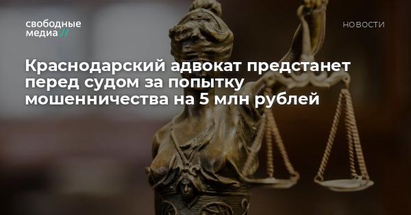 Перед судом предстанет адвокат адвокатской палаты Краснодарского края. Он обвиняется в попытке мошенничества на 5 млн рублей.