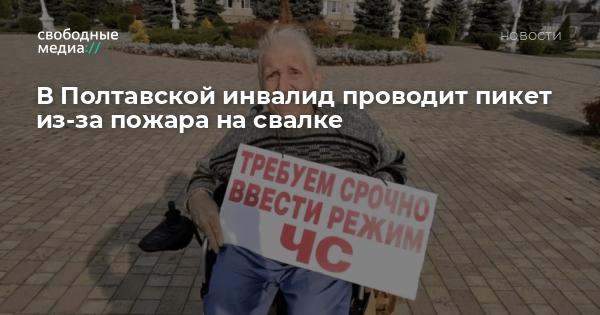 Онкобольной активист из станицы Полтавской Юрий Трубачёв проводит одиночный пикет с требованием ввести режим ЧС в станице из-за горящей свалки, пишет «Протокол».