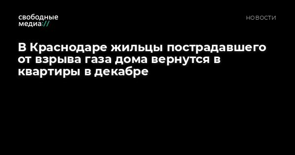 В Краснодаре жильцы дома на улице Клинической, повреждённого в результате взрыва бытового газа, смогут вернуться в свои квартиры в декабре, сообщает пресс-служба администрации города.