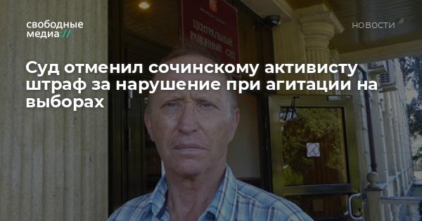 Лазаревский районный суд Сочи рассмотрел апелляционную жалобу активиста Владимира Атаманчука на штраф за нарушение при агитации на выборах и отменил его, сообщает «Кавказский узел» (признано в России иностранным агентом).