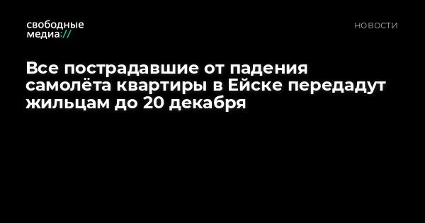 Все квартиры в доме, восстановленном после падения самолёта в Ейске, планируют передать до 20 декабря. Об этом стало известно в ходе «Прямой линии» губернатора Вениамина Кондратьева.
