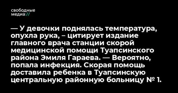 «У девочки поднялась температура, опухла рука», – говорит главврач станции скорой медицинской помощи Туапсинского района Эмиля Гараева.