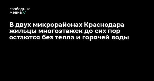 Жители двух микрорайонов Краснодара вторые сутки остаются без отопления и горячего водоснабжения. Чиновники уверяют, что вопрос будет решен к вечеру сегодняшнего дня. Речь идет о многоэтажных домах, расположенных по улице Московской и Восточно-Кругликовской.