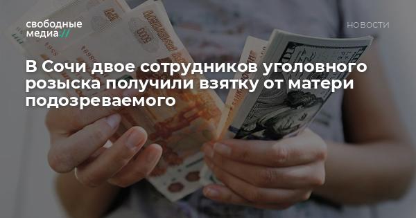 Предварительно установлено, что сотрудники уголовного розыска УВД по городу Сочи получили от женщины взятку в 300 тысяч рублей за непривлечение её сына к уголовной ответственности. На период проведения проверки полицейские отстранены от исполнения служебных обязанностей. В настоящее время собранные оперативниками материалы направлены в следственные органы для принятия процессуального решения.