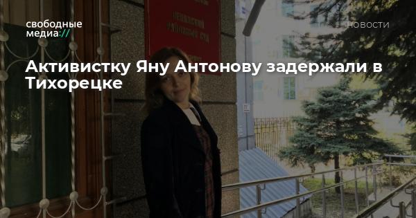 Краснодарскую активистку Яну Антонову задержали сегодня в Тихорецке. Об этом она написала в своём телеграм-канале.