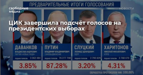 Официальные результаты голосования будут представлены на заседании ЦИК России 21 марта. После подведения итогов избранный президент должен будет пройти процедуру инаугурации.