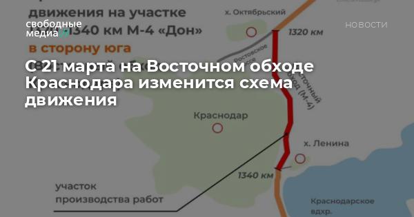 ГК «Автодор» информирует о том, что в связи с заменой асфальтобетонных слоев покрытия на участках М-4 «Дон» с 1320 по 1340 км (Восточный обход Краснодара) движение транспорта ограничат – сужение дороги и снижение скоростного режима.