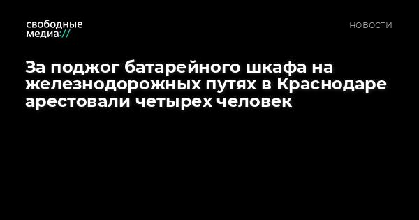 В Краснодаре четыре человека арестованы за поджог батарейного шкафа на железнодорожных. Их задержали сотрудники отдела уголовного розыска УТ МВД России по ЮФО совместно с коллегами из УФСБ России по Краснодарскому краю.