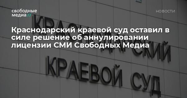 4 апреля судья Краснодарского краевого суда Александр Булат рассмотрел апелляционную жалобу Свободных Медиа на решение Советского районного суда Краснодара о признании недействительной регистрации СМИ в связи с блокировкой в России.