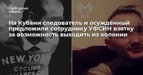 Следователь и осуждённый на Кубани пытались договориться с сотрудником УФСИН о возможности выходить из колонии, сообщает Kub Mash.