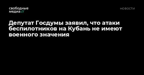 Депутат Госдумы от Краснодарского края, зампредседателя комитета по экономической политике Сергей Алтухов заявил, что атаки беспилотников со стороны ВСУ не имеют какого-либо военного значения и не несут серьезного экономического ущерба, сообщает ТАСС.