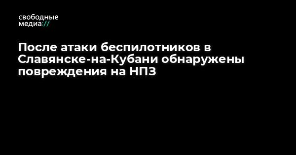 После атаки беспилотников в Славянске-на-Кубани были обнаружили повреждения на НПЗ. БПЛА упал на его территории.