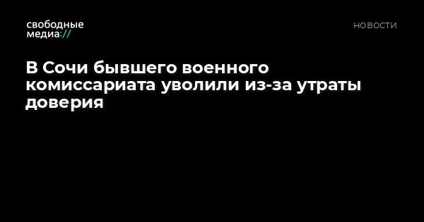 Бывший военный комиссар города Сочи Александр Чухба был уволен с должности в связи с утратой доверия, сообщает «РБК» со ссылкой на реестр портала «Госслужба».