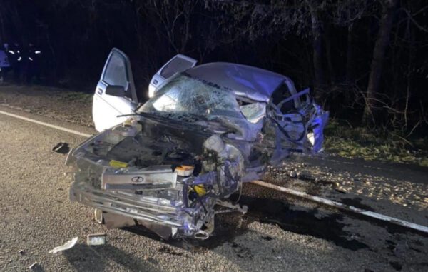 На темной дороге автомобиль выехав на встречную полосу движения.